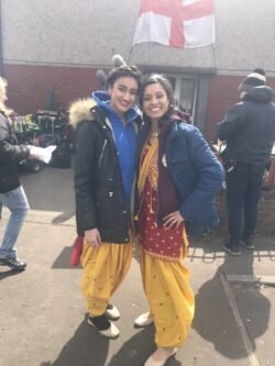 In April 2017 the manager, Parv Kaur and two of her dhol players made their way to Halifax to film for the brand new hit Channel 4 drama, ‘Ackley Bridge’. The three dhol drummers spent just under 11 hours on the set, most of which was outside in the cold. During that time they socialised with the amazing cast including Adil Ray, Joanne Joyner and upcoming star Darcy Butt.